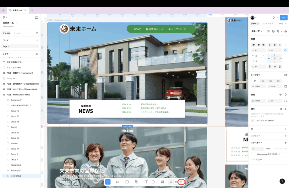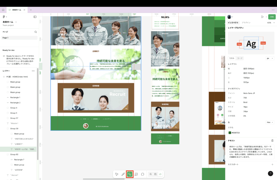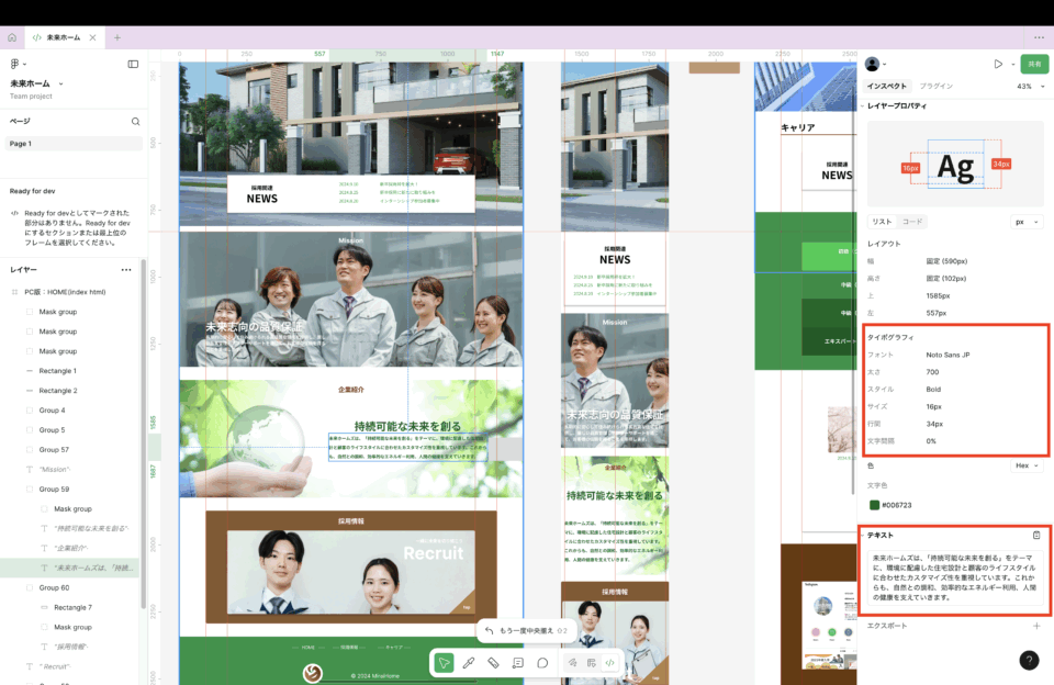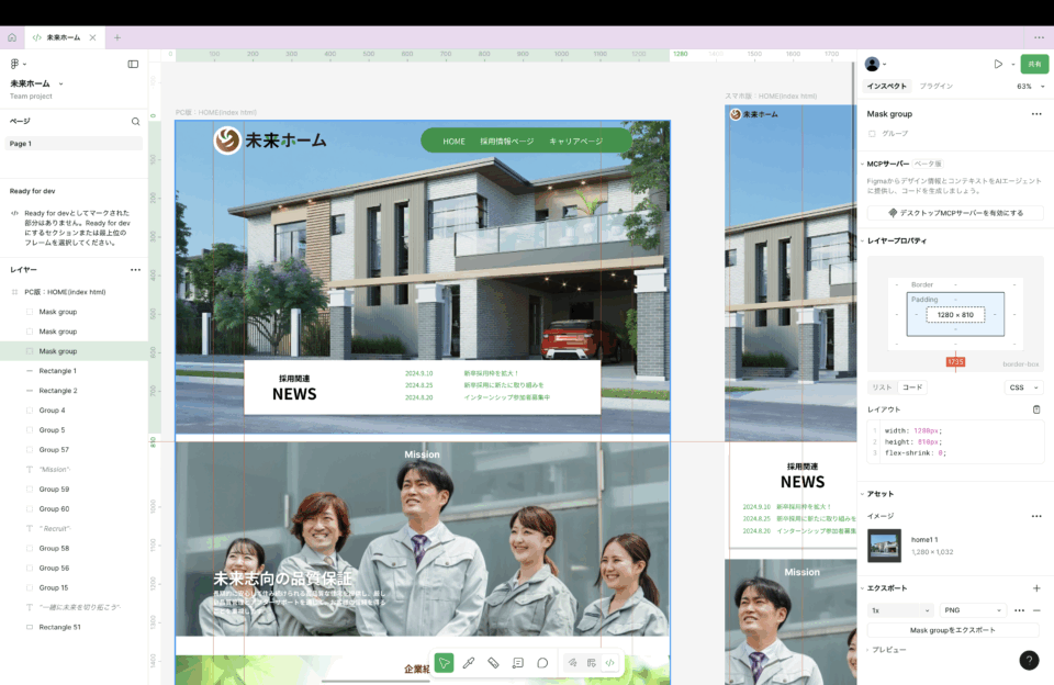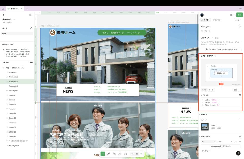 フィグマのコードをコピペして使用すると、レスポンスに対応していないデザインのコードだったりするので、参考程度にみよう!