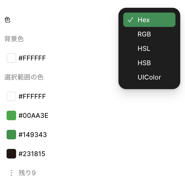 赤枠で、デザインで使用したカラーを確認できます。
