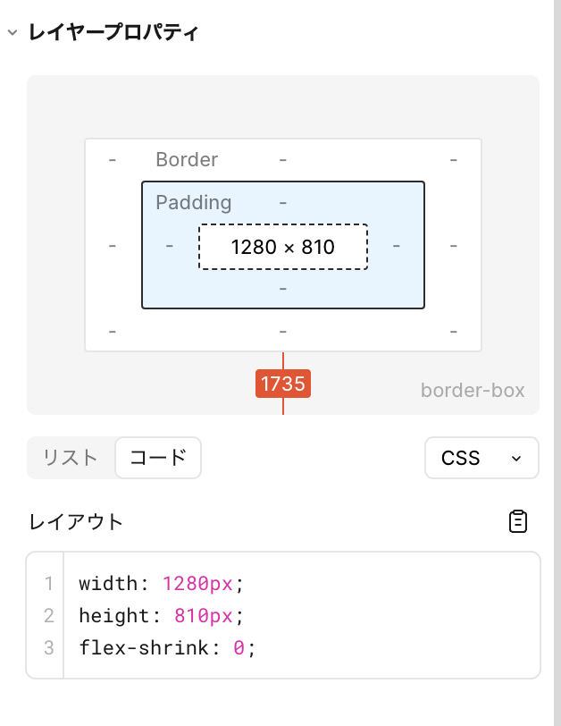 レイアウトで、フィグマが考えたCSSが表示されます。