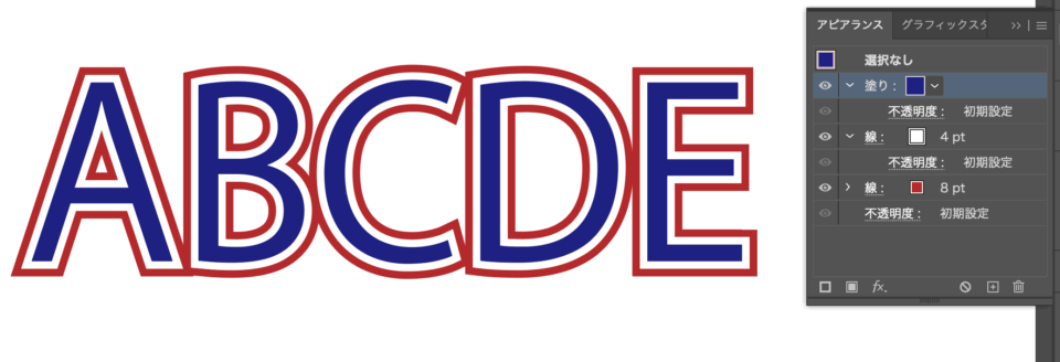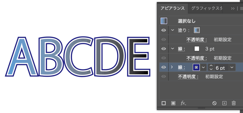アピアランスの見方はレイヤーと同様に上段が上に表示される仕組みとなっています。